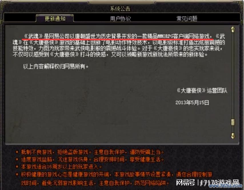 2013年7月4日,网易在《大唐豪侠》官网发布了停运公告,通知游戏将于7月15日零点认真阻隔运营。公告仅以一句“由于业务发展上的调治”算作事理,为这款运营了七年的作品画上了句号。