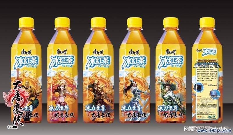 六月中旬,印有《大唐豪侠》游戏主题的康师父冰红茶、冰绿茶全面上市。与此同期,游戏内也同步更新,增设了“康师父冰茶楼”场景与“冰茶使臣”NPC。