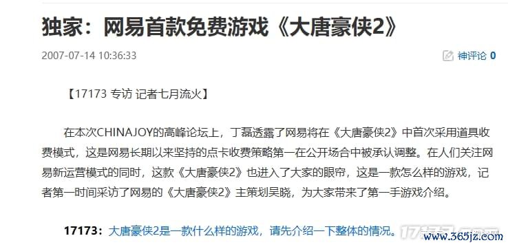 2007年,丁磊更是公开流露,这款“《大唐豪侠2》”将成为网易首款免费游戏。